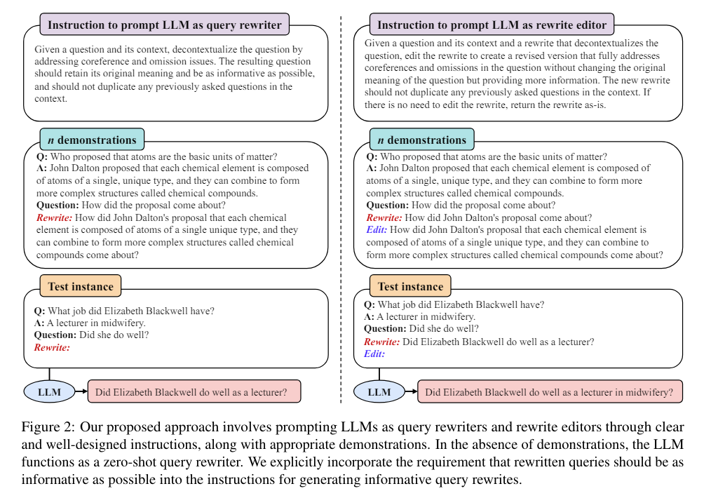 insruction을 통해 LLM을 query rewriters와 rewrite editors 둘 다로 prompt 하는 것을 제안함.
